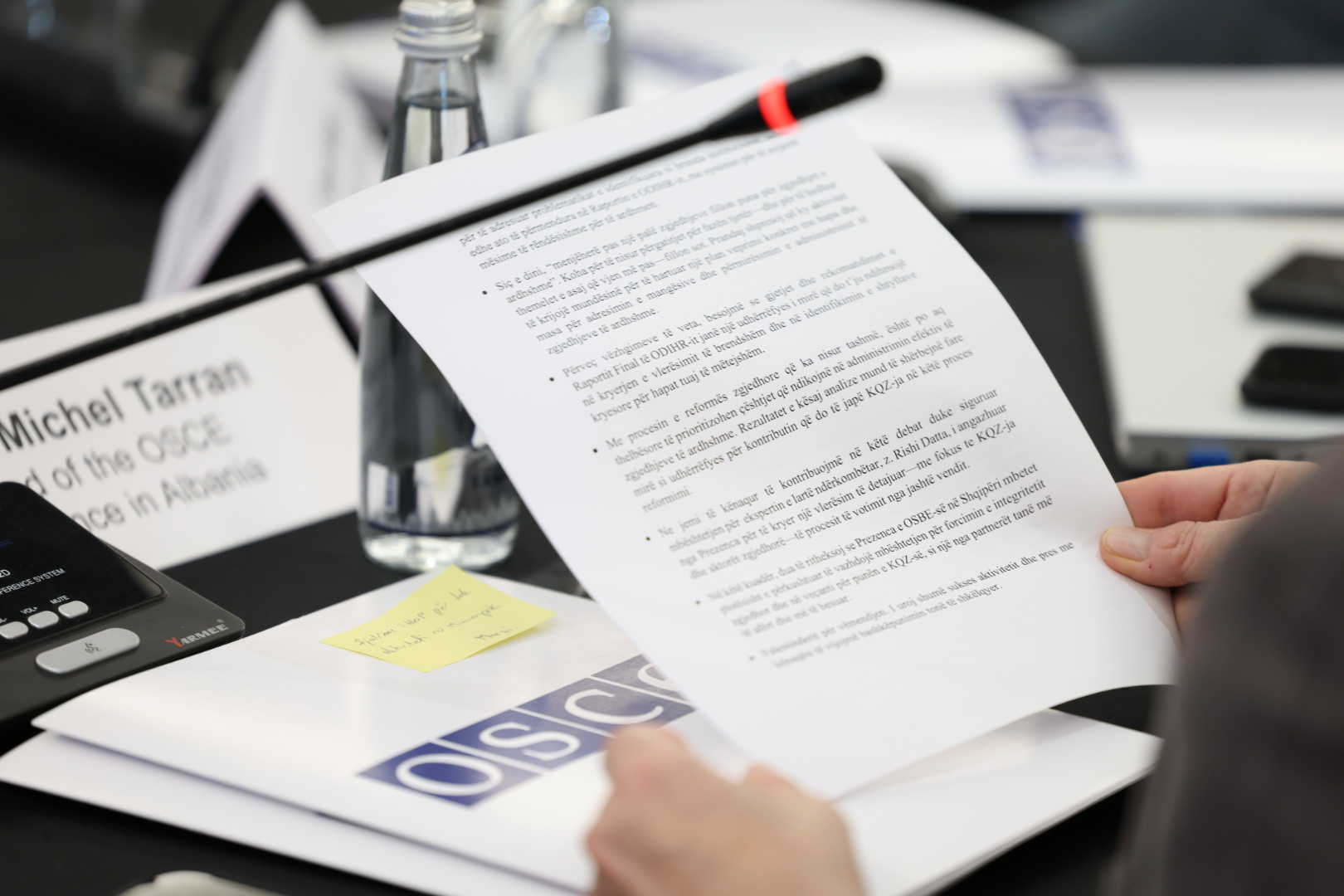 Në hapje të aktivitetit, Komisioneri Shtetëror i Zgjedhjeve, z. Ilirjan Celibashi përshëndeti pjesëmarrësit së bashku me Ambasadorin Michel Tarran të Prezencës së OSBE-së në Shqipëri, duke nënvizuar rëndësinë e bashkëpunimit të ngushtë institucional dhe angazhimin tonë të përbashkët për forcimin e integritetit zgjedhor.